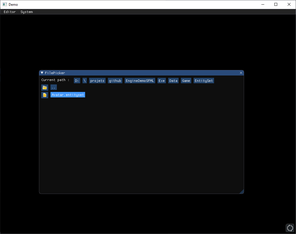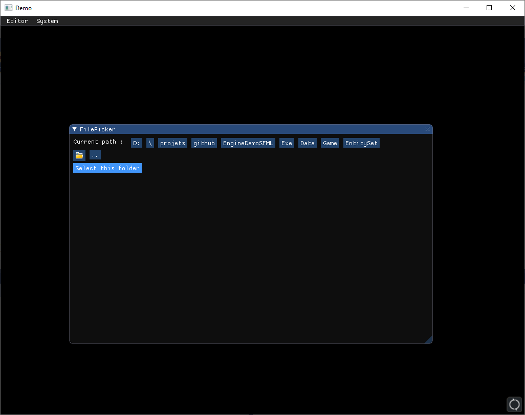 Continuant mes expériences avec ImGui, voici un nouvel élément : un explorateur de fichiers / file/folder picker s'appuyant sur ImGui et sf::filesystem Du C++17.